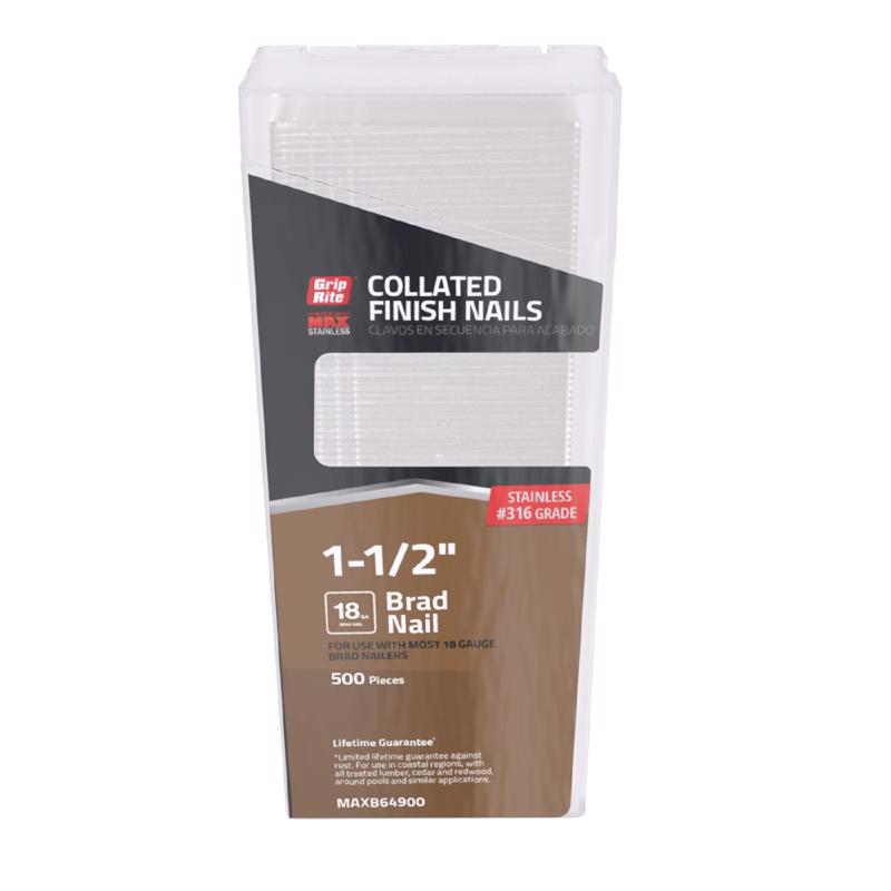 Grip-Rite 1-1/2 in. L X 18 Ga. Angled Strip 316 Stainless Steel Brad Nails 1 pk (MAXB64900)
