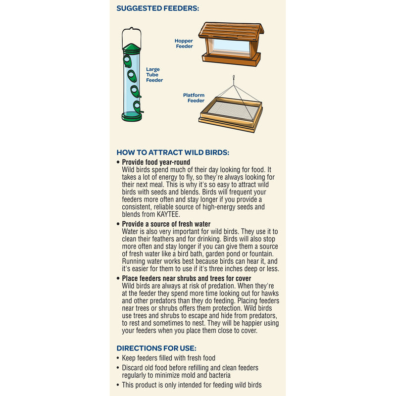 Kaytee safflower Seed is a high oil content seed that is very desirable to cardinals as well as other backyard birds. As an added benefit, safflower helps discourage squirrels from eating because of its bitter taste. Because squirrels dislike this seed, it is a good food to offer where squirrels are a problem at the feeder. Feed Kaytee safflower seed alone or you can mix it with other straight grains and blends to draw in your favorite birds.