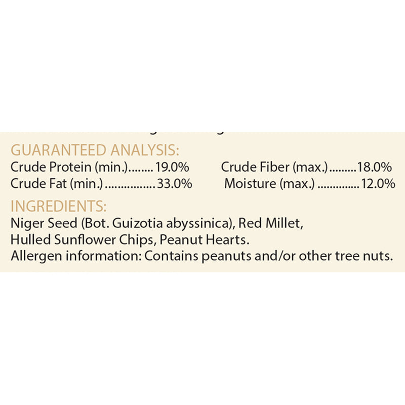 This Kaytee super finch sock is an instant feeder filled with our Kaytee ultra wild finch blend. It is a blend of four select ingredients, developed to call on the birds' sense of sight, which they naturally use to find their food. Kaytee has applied this knowledge of visual attraction to the development of this seed blend. The result is that the ultra wild bird blend is preferred 3-to-1 when compared to Nyjer seed alone and attracts 60 percent more birds in national trials.