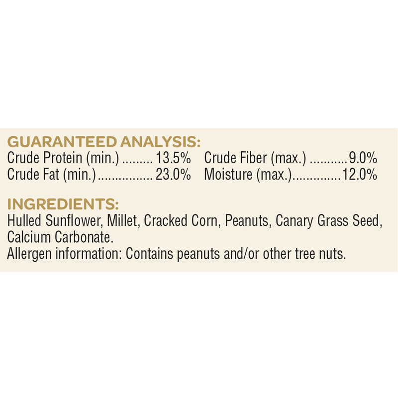 - Other Ingredients: Millet, Cracked Corn, Peanuts, Canary Grass Calcium Carbonate