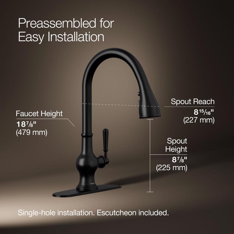 Kohler Treaty One Handle Matte Black Pull-Down Kitchen Faucet