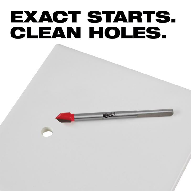 Our Glass and Tile Drill Bit features an exact start tip for clean holes and minimal bit walking in glass and ceramic tile. Engineered with sharpened carbide, Milwaukee Glass and Tile Bits provide faster tile drilling than standard glass and tile bits. We've designed these bits with a reinforced carbide head for increased durability when high-speed drilling into tile and glass. We've specifically designed these bits for drilling holes in glass and ceramic tile with drill drivers only.