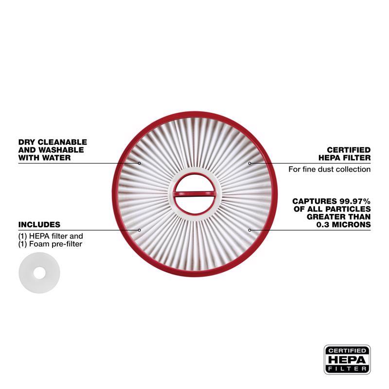 The Milwaukee HEPA Filter is compatible with the M18 Fuel Compact Vacuum (0940-20). This HEPA filter is easy to install and captures 99.97% of all particles greater than 0.3 microns for fine dust collection.