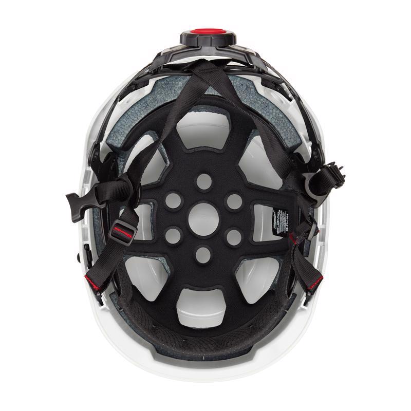 The MILWAUKEE Type 2, Class E White Safety Helmet delivers users better protection and more comfort. The safety helmet offers protection from top and side impacts. These construction safety helmets are BOLT Accessory Compatible with four BOLT accessory slots and two universal accessory slots that easily integrate additional personal protection equipment and accessories so users can Secure Accessories Simultaneously. The helmet includes a BOLT Headlamp Mount that works with most headlamps for easy, secure attachment, and a BOLT Marker Clip allows for easy access to pens and markers. This Milwaukee helmet has a comfortable padded suspension that includes an adjustable swinging ratchet for better comfort. The climbing helmet style also has a comfortably fitting five adjustable buckle chin strap for better security. An antimicrobial sweatband and helmet liner prevent odor and bacteria build up and are removable and machine washable. These safety helmets are ANSI type 2.