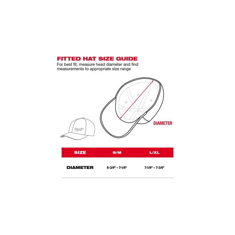 The Milwaukee FlexFit Fitted Hat is made from a lightweight combination of cotton and polyester with a flexible band that can be comfortably adjusted. The curved bill of these fitted caps fits needs on and off the jobsite. This hat has a clean, confident design with a 3-1/2 in. crown depth.