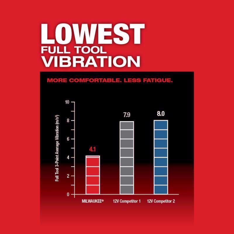 Our M12 Fuel Oscillating Multi-Tool generates the fastest 12V cut speed. The Powerstate Brushless Motor delivers 10,000 to 20,000 OPM while maintaining its speed under load better than the competition to provide the fastest cuts of any 12V competitor. The vibration isolating tool design minimizes vibration, making your cuts more comfortable with less fatigue. Redlink Plus Intelligence ensures unmatched levels of performance, protection and compatibility. The M12 Redlithium XC4.0 battery (not included) delivers most work of any 12V battery on the market.