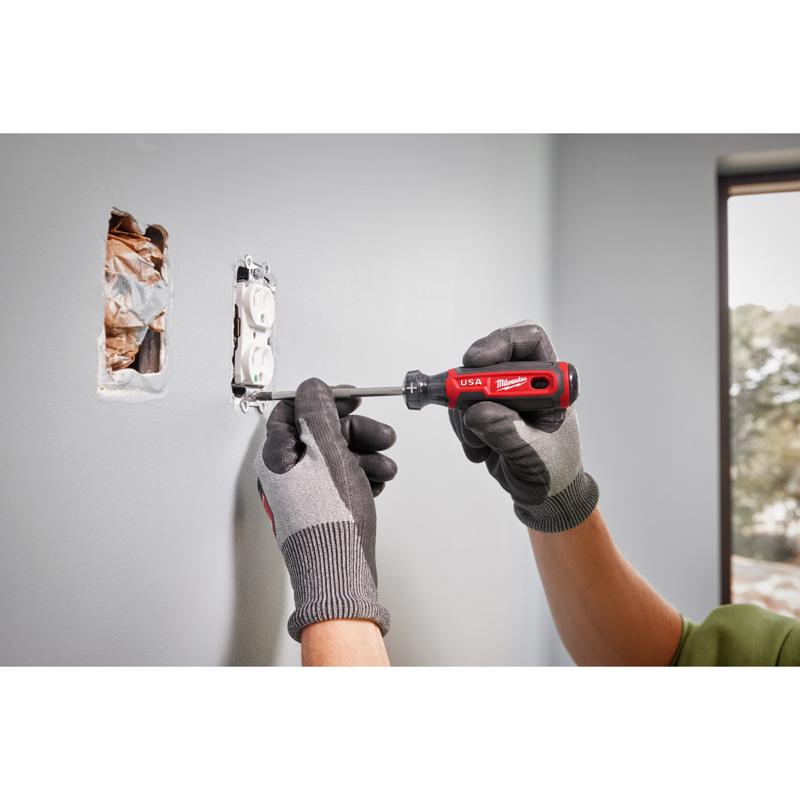 The Milwaukee 6-piece cushion grip screwdriver Set provides you with professional grade solutions and durability. The professional screwdriver set features an anti-peel handle design, hardened tips and forged shanks. Tactile identification, a new-to-world Milwaukee innovation, allows you to accurately select the correct driver without looking. The wrench-ready bolster and precision knurling offers you the features needed to increase your efficiency and effectiveness on the job site.