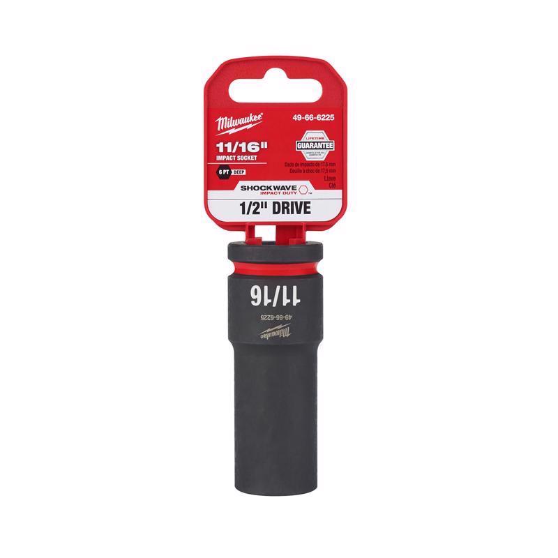 Milwaukee Shockwave 11/16 in. X 1/2 in. drive SAE 6 Point Deep Impact Socket 1 pc (49-66-6225)