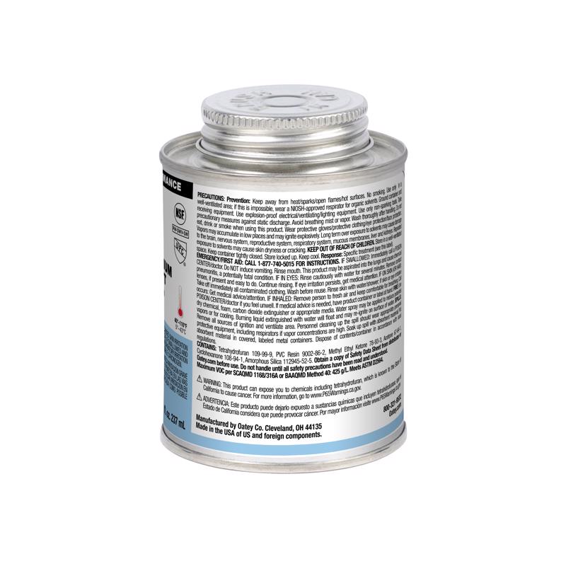 Oatey PVC Rain-R-Shine Medium Bodied Fast Set Blue Cement is recommended for pool and spa, irrigation, potable water, pressure pipe and DWV applications. It is formulated for wet conditions and quick pressurization, and is easy to apply with included in-lid dauber. This blue, medium bodied, fast set cement can be used to solvent weld all schedules and classes of PVC pipe and fittings up to 6 in. diameter with interference fit. Oatey products have earned the trust of plumbing professionals for over 100 years