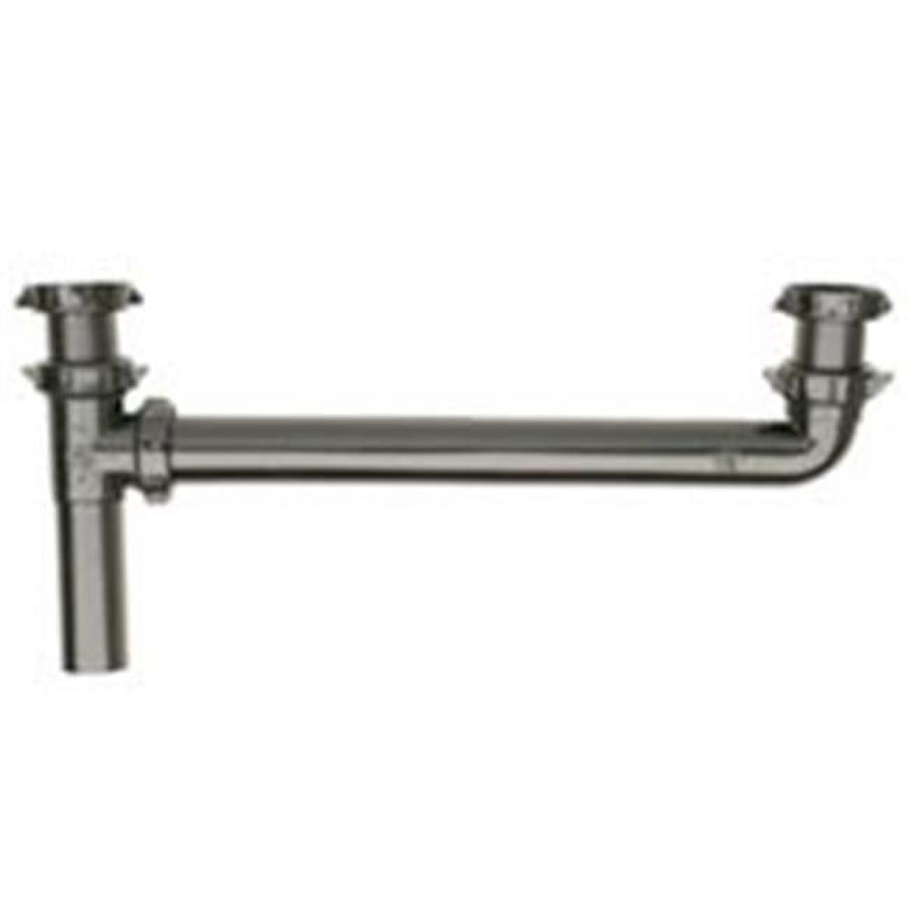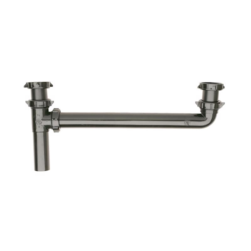 The end outlet sink waste has an inlet of 1-1/2" and is 16" long. This sink waste fits double bowl sinks. Its slip joint connects or directs connects to the sink and has a baffle tee for faster drainage. It also includes all necessary nuts and washers.