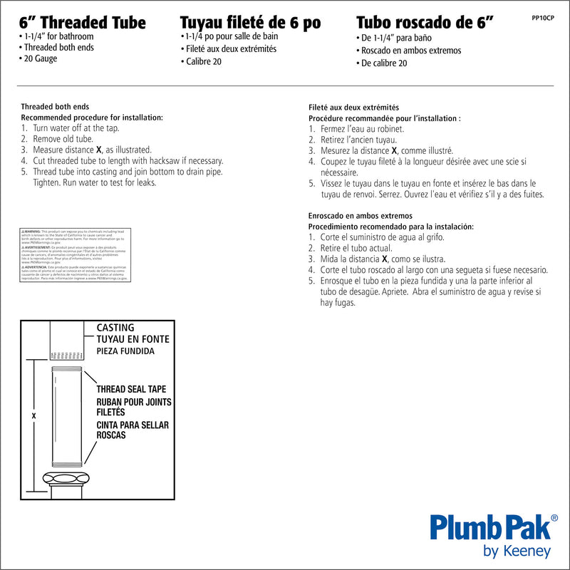 The wall plumbing and complete your sink drain installation with this Plumb Pak sink wall tube. It is made of 20 gauge brass for durability, strength and rust resistance. The chrome-plated finish easily complements existing fixtures.