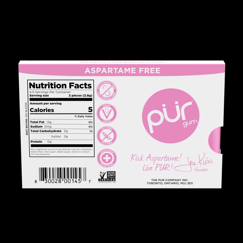PUR is the #1 Better for you leading gum brand. PUR Gum is aspartame free, sugar free, and sweetened with 100 percent Xylitol, a natural sweetener derived from plants and known for its dental benefits like reducing tooth decay. PUR products are made with