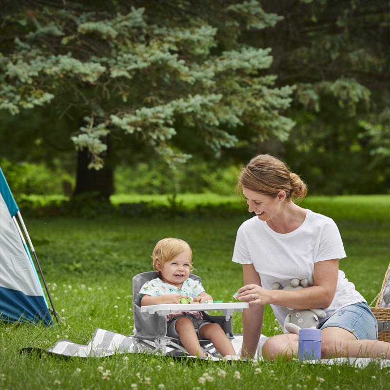 The Regalo My Chair Portable Booster Seat with Tray is a convenient booster seat for your little one transitioning to "big kid" status. It folds like a bag chair and comes with an attachable tray for easy meals on the go. The perfect choice when dining, traveling, or visiting friends and family.