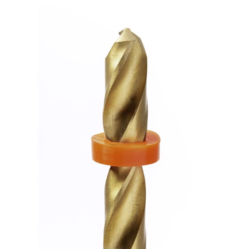 The rubber depth stop is easy to use with many sizes. Slide over drill bit and place at desired depth.