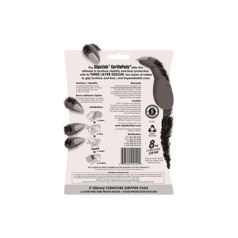 Mighty Grip That Won't Slip - Gorilla Pad Furniture Grippers by Slip stick are the universal solution to stop unwanted movement or sliding of furniture/objects, protect hard surfaces from damage, and prevent moisture from raising up into wooden furniture feet. Ideal Floor Protectors for Furniture Legs - These anti slip pads are designed to keep furniture and a range of objects securely in place as well as protect hard surfaces. Gorilla Pads feature a specially formulated non-skid rubber outer layer for maximum grip between both furniture and floor and have a puncture proof 0.2 in. thick solid felt core (pads are 5/16 in. thick and compress to 1/8 in. with weight of furniture).