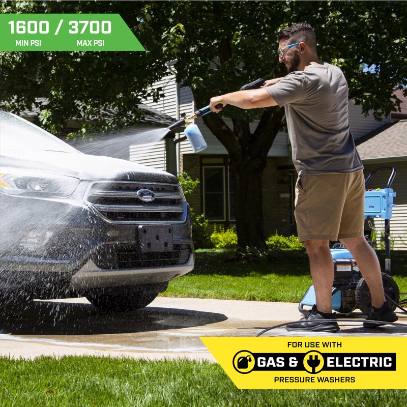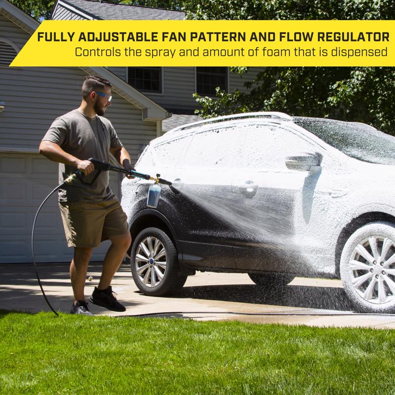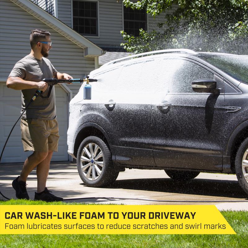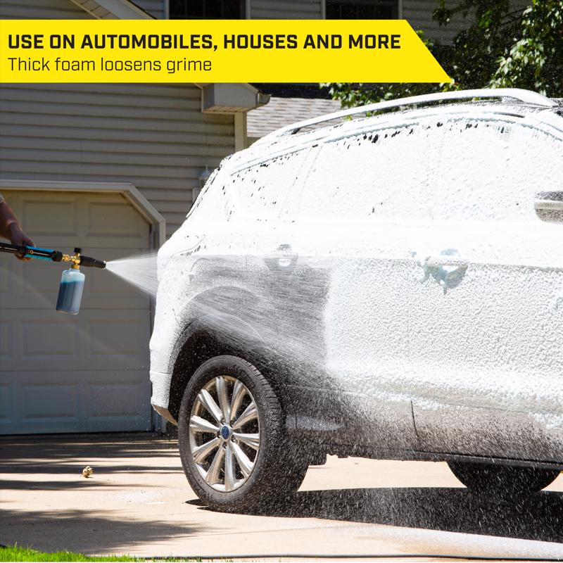 Bring car wash-like foam to your driveway with the SurfaceMaxx pressure washer foam cannon. Cut through road grime with a thick foam that penetrates dirt and eliminates back-breaking scrubbing. Simply fill the bottle with your favorite foaming soap and wa